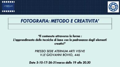 Il 3 marzo 2026 inizia la seconda edizione del corso base dal titolo: “Fotografia. Metodo e creatività” organizzato da Aternum…