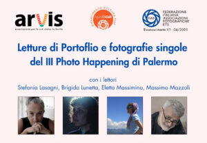 Da pochi giorni si è svolto il terzo Photo Happening organizzato a Palermo da Arvis Associazione per le Arti Visive BFI.  Punto nevralgico della manifestazione è la splendida sede dell’associazione che proprio a ridosso del centro accoglie la Galleria Fiaf dove sono stati esposti i progetti che hanno vinto la scorsa edizione.