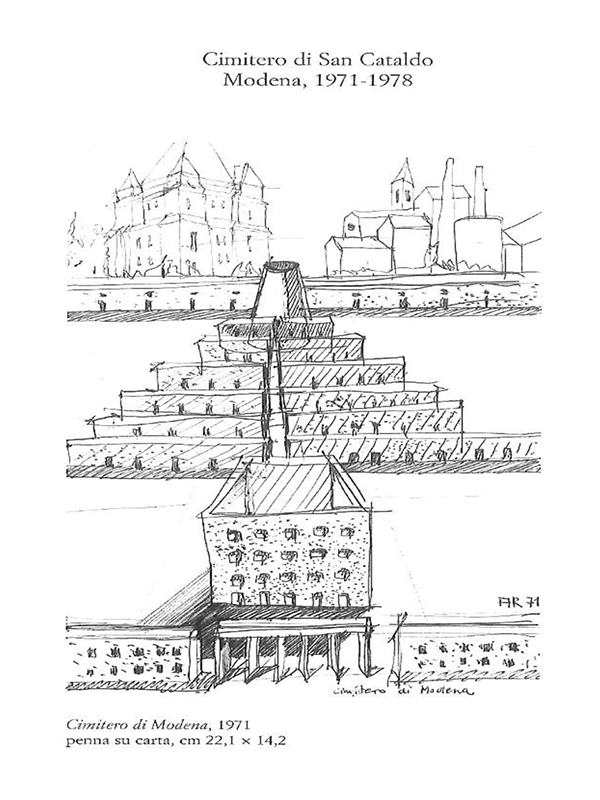 Il Cimitero di San Cataldo, progettato da Aldo Rossi, appare come un’architettura muta, geometrica, sospesa. Una città silenziosa dove l’idea di abitare sopravvive alla vita. Le sue forme rigide sembrano trattenere il tempo e, con esso, la presenza di chi non c’è più.
