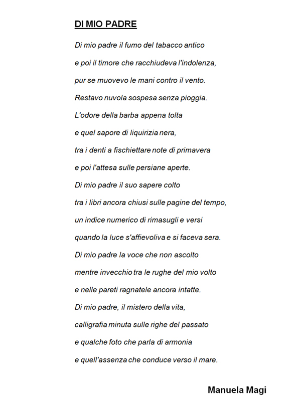 Ho anche ritrovato una sua lettera, la sua calligrafia e qualche riga che parla di me e del suo amore. Le sue parole che posso ancora leggere, la sua voce che non posso più ricordare.