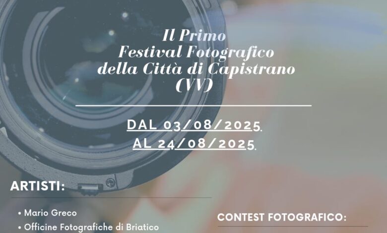 Il Capistranofotofestival si distingue per un programma che abbraccia diverse forme d’espressione fotografica e che si apre alla partecipazione di importanti realtà del territorio.Il Primo importante appuntamento del Festival è la presentazione del libro fotografico di Mario Greco “Calabria, storie di uomini e di terra” il 03 agosto 2025 alle ore 21 nella suggestiva cornice di “Ciciuja” (Traversa di Via Roma) Mario Greco è un artista abile fotoreporter, cantore degli elementi naturali del vivere calabrese. Dialogherà con lui Donna Concetta Titti Marzano, Presidente dell’associazione “L’isola che non c’è – APS” e ideatrice e curatrice di rassegne culturali e di una trasmissione radiofonica in onda su Radio Onda Verde. Premiata con il prestigiosissimo Premio Muse sabato 26 Luglio 2025. Interverrà il giovane sociologo Anthony Ferraro.  Al termine della presentazione del libro verrà inaugurata la mostra collettiva di “Officina Fotografica” di Briatico. Questa realtà, rinomata per la sua capacità di coniugare ricerca artistica e impegno sociale, porterà a Capistrano una selezione di scatti che raccontano storie di persone, luoghi e tradizioni calabresi. Le immagini, potenti e autentiche, inviteranno il pubblico a fermarsi, osservare e riflettere. Gli autori di questa mostra collettiva sono Domenico Garrì, Anthony Ferraro e Giuseppe Morello. La mostra sarà arricchita dalle opere scultoree in terracotta ddell’abile e poliedrico artista Alberto Polistena. Una seconda mostra di Vito Pileggi verrà inaugurata il giorno 11 agosto 2025. Vito è un fotografo dal tratto poetico e raffinato. Presenterà una personale in cui la luce, i colori e le atmosfere tipiche del Sud Italia diventano protagonisti assoluti. I suoi scatti – sospesi tra realtà e sogno – offriranno una narrazione visiva che saprà emozionare e ispirare. Vito è un vero artista della fotografia, ancora scatta in analogico e sviluppa le sue fotografie nel proprio laboratorio con maestranza. Le due mostre verranno allestite in uno spazio suggestivo del borgo: la chiesetta della Madonna delle Grazie in corso Roma. Un sentito ringraziamento è doveroso porgerlo al Sacerdote Don Antonio Calafati per aver concesso agli organizzatori di usufruire della suggestiva chiesetta per le due esposizioni.