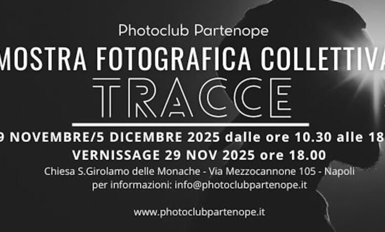 Il Photoclub Partenope è lieto di invitare tutti gli appassionati di fotografia, soci, amici e curiosi del mondo dell’immagine alla mostra fotografica collettiva “Tracce”, che si terrà dal 29 novembre al 5 dicembre 2025 nel cuore del centro storico di Napoli, presso la Chiesa di San Girolamo delle Monache, in via Mezzocannone 105.