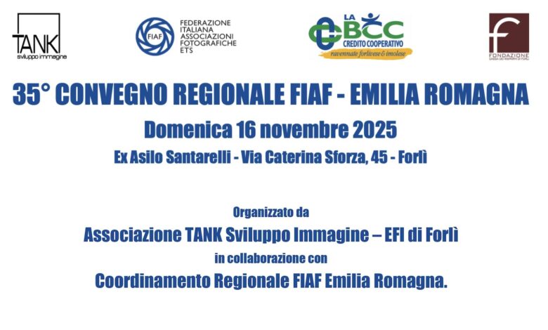 Organizzato da Associazione TANK Sviluppo Immagine – EFI di Forlì in collaborazione con il Coordinamento Regionale FIAF Emilia Romagna.