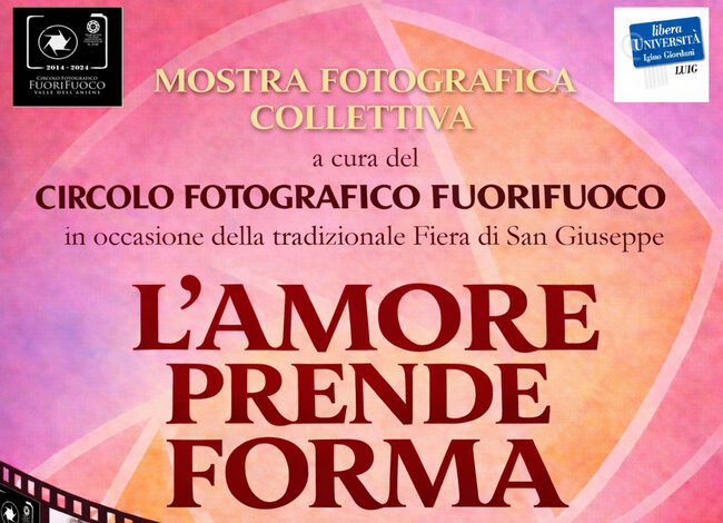 Da questa suggestione nasce la mostra fotografica collettiva L’amore prende forma, in cui i soci del Circolo fotografico FUORIFUOCO interpretano il tema attraverso il proprio sguardo,