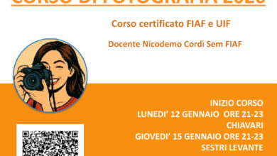 Il Gruppo fotografico Chiavari organizza Un Corso Base di Fotografia a partire da Gennaio ad Aprile 2026 (lunedì ore 21-23)…