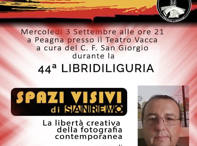 Avrà luogo il 3 settembre alle ore 21, presso il Teatro Vacca in Peagna di Ceriale (Sv),nell’ambito della rassegna “I libri di Liguria”. Coordina il Ciroclo Fotografico San Giorgio BFI ILFIAP di Albenga