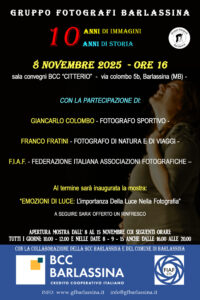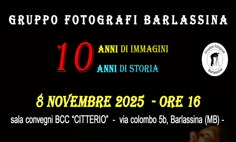 Il GRUPPO FOTOGRAFI BARLASSINA celebrerà il suo 10° anniversario con un evento speciale di 8 giorni dedicato alla fotografia, alla luce e alle emozioni che questa arte sa trasmettere.