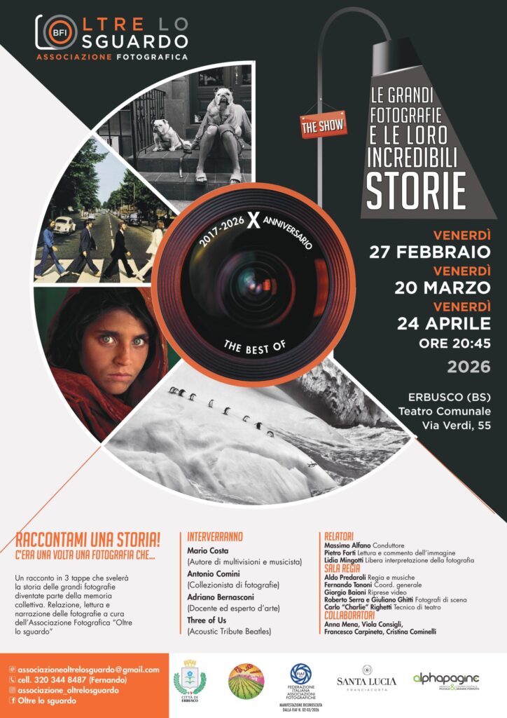 Il Progetto “Le grandi fotografie e le loro incredibili storie” giunto al 10^ anno è stato pensato e realizzato dal Gruppo fotografico “Oltre lo Sguardo” di Erbusco (BS).