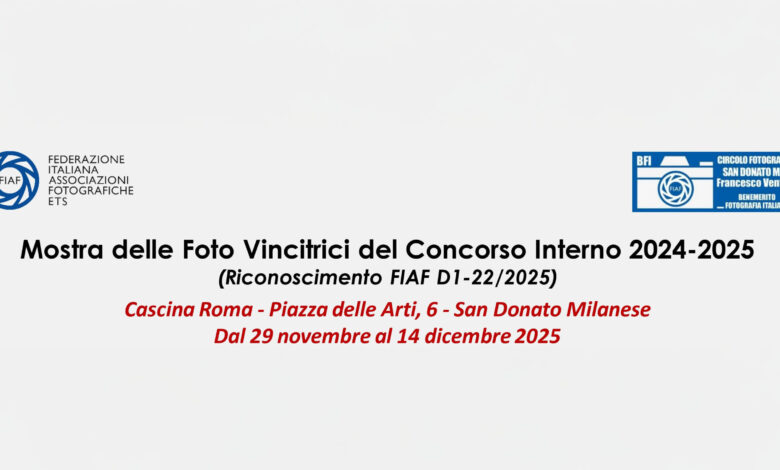 Si inaugura a San Donato Milanese, presso la splendida sede espositiva di Cascina Roma, l’Esposizione delle Foto Vincitrici del Concorso Interno 2024-2025 del locale Circolo Fotografico “F. Ventura”.
