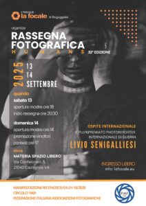 Il 13 e 14 settembre 2025 torna il tradizionale appuntamento fotografico con tre mostre, proiezioni di audiovisivi e un’ospite eccezionale: Livio Senigalliesi, pluripremiato fotoreporter e giornalista di guerra per la serata.