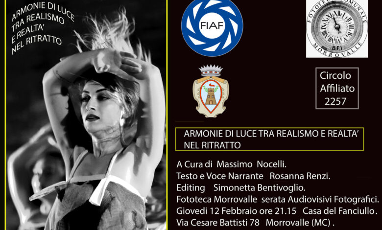 La Fototeca Comunale BFI di Morrovalle ha il piacere di invitare tutti a partecipare all’incontro dal titolo “Armonie di Luce tra realismo e realtà nel ritratto.