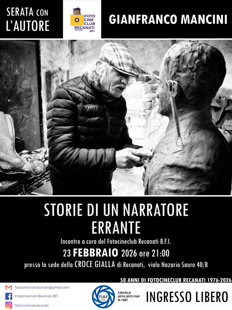 L’incontro, curato dal Fotocineclub BFI di Recanati, si terrà lunedì 23 febbraio alle ore 21:00, presso i locali della Croce Gialla di Recanati, in viale Nazario Sauro 40.