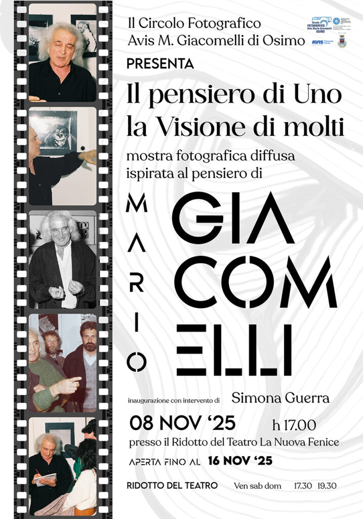 Sabato 8 novembre 2025, alle ore 17, presso il ridotto del Teatro La Fenice di Osimo, il Circolo Fotografico AVIS M. Giacomelli BFI ha il piacere di invitare tutti all’inaugurazione della mostra “Il pensiero di Uno, la Visione di molti”.