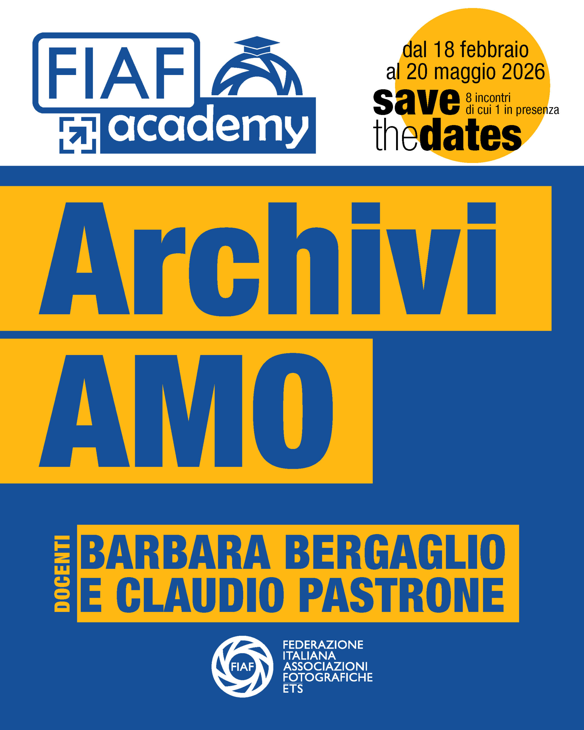 NOTA BENE: i circoli devono poi inviare una mail alla Segreteria FIAF segreteria@fiaf.net indicando il nominativo o i nominativi che, al corso ArchiviAMO, rappresentano il circolo.