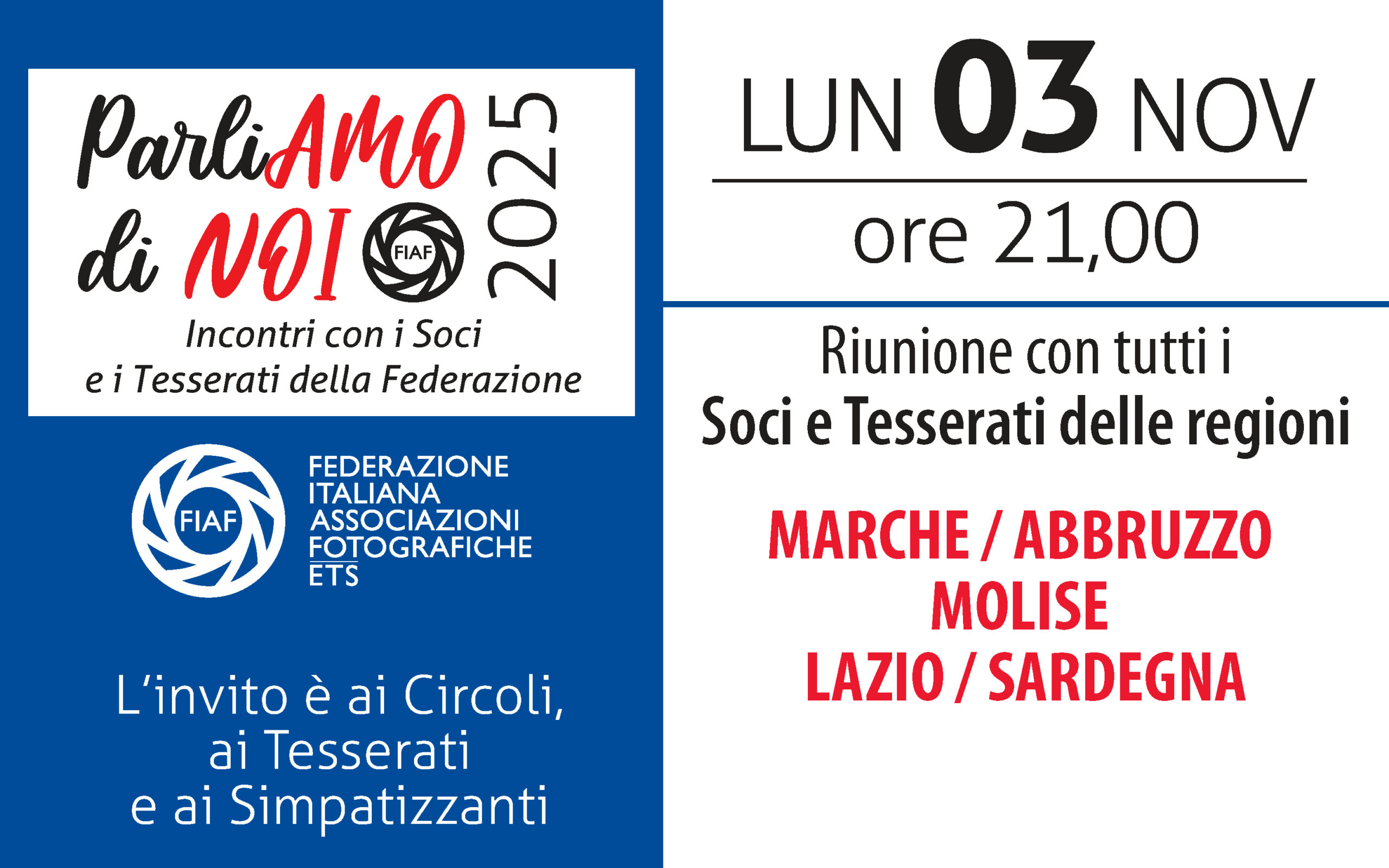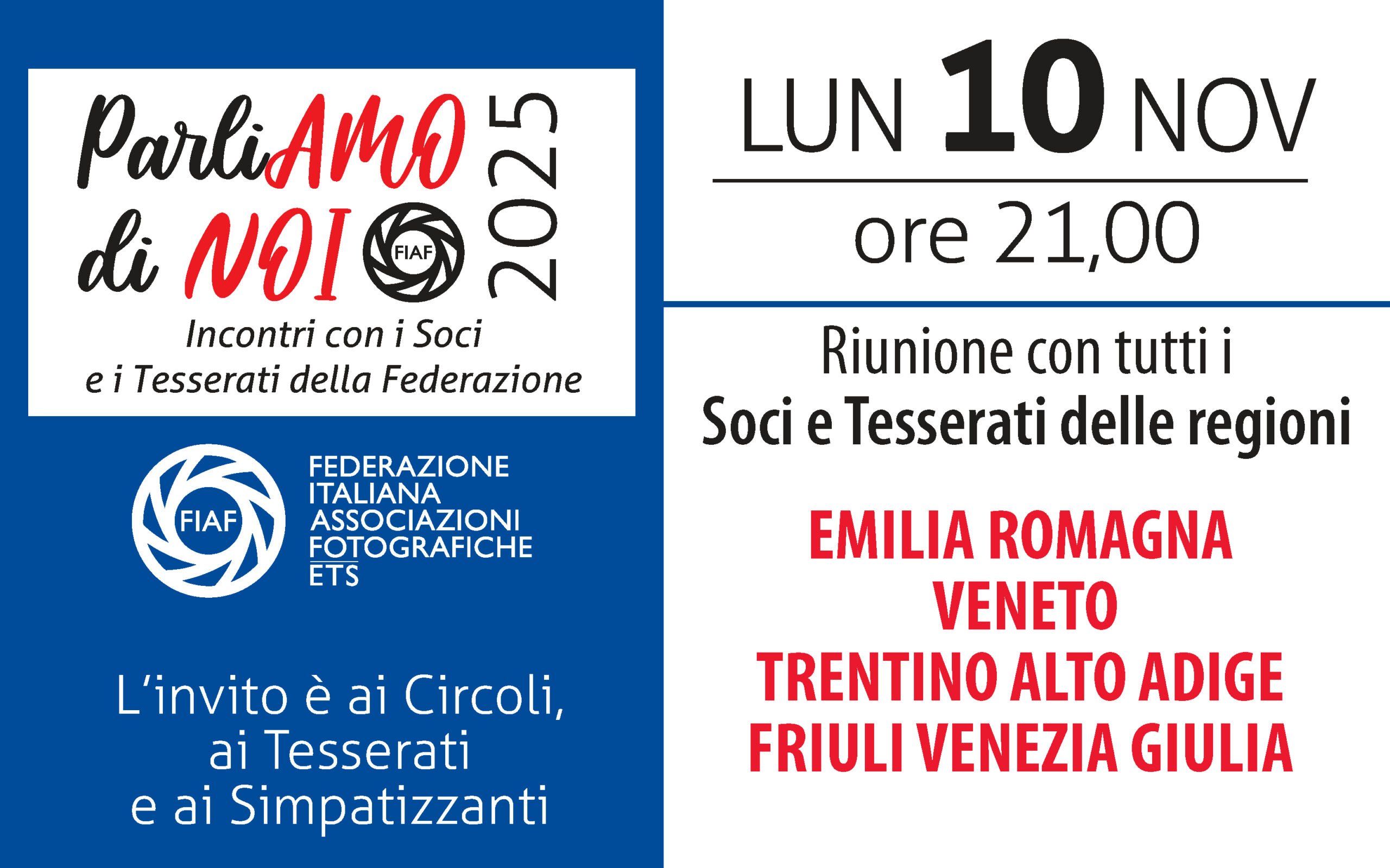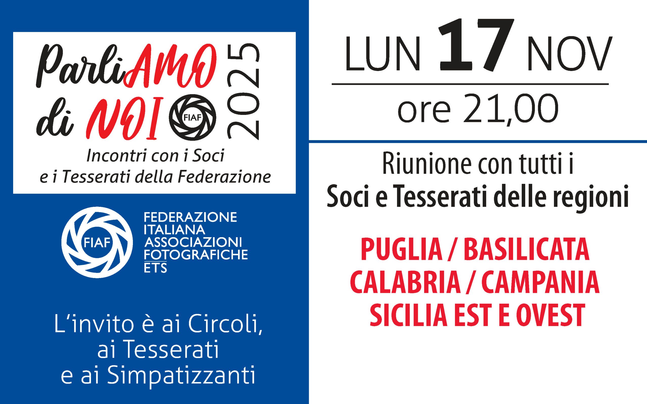 Chiedi il link della tua Regione al tuo circolo, al tuo Responsabile di Area o Coordinatore Regionale FIAF oppure scrivi un messaggio alla Pagina Facebook FIAF Progetti News Attività