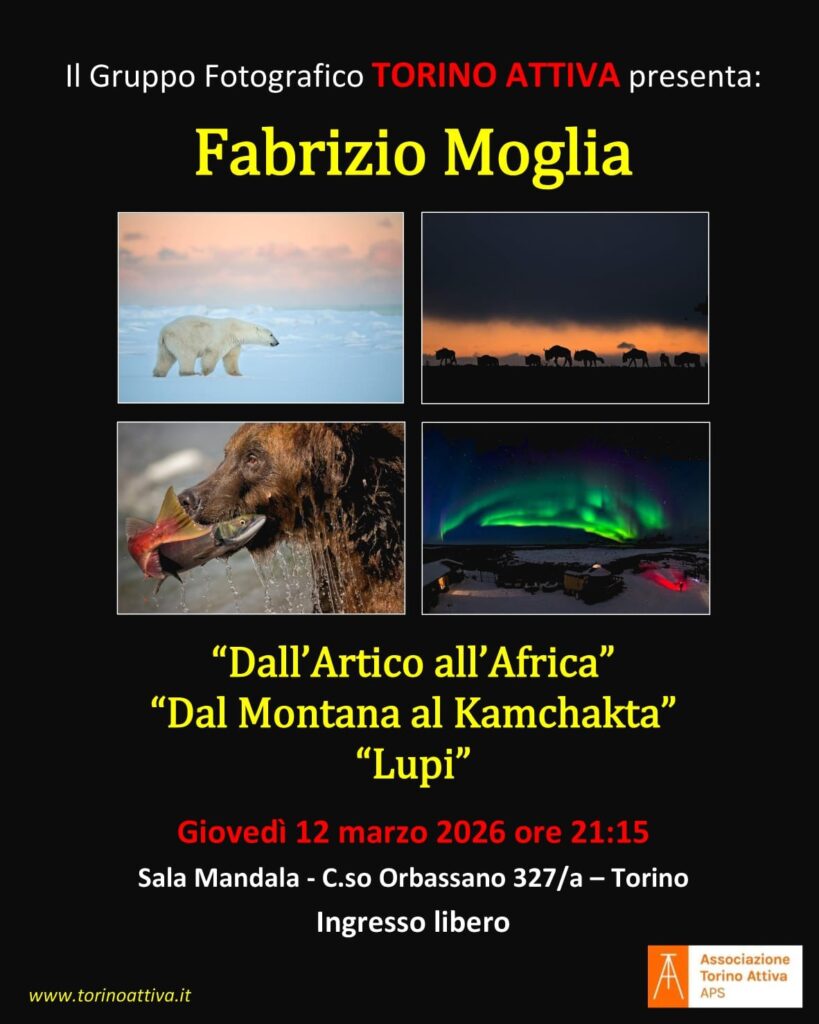 Giriamo il mondo con FABRIZIO MOGLIA: “Dall’Artico all’Africa” – “Dal Montana al Kamchakta” e soffermiamoci sui “Lupi” – Giovedì 12 dalle ore 21,15 presso il Gruppo Fotografico Torino Attiva