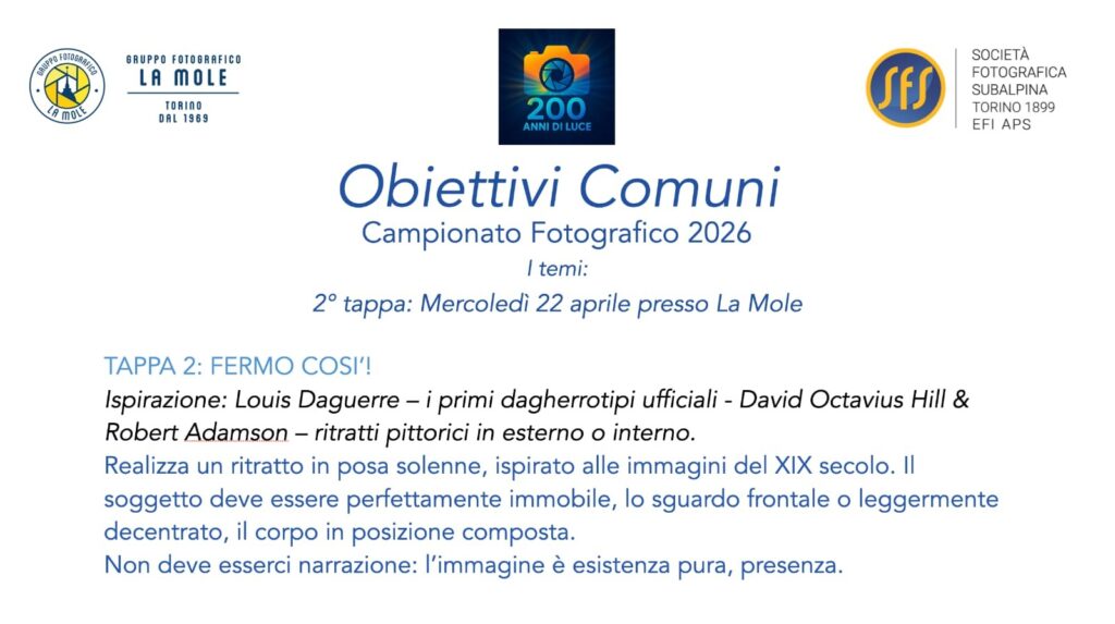 2° Tappa di Fotocampionato tra due circoli storici di Torino: la Società Fotografica SUBALPINA e il Gruppo Fotografico LA MOLE – Mercoledì 22