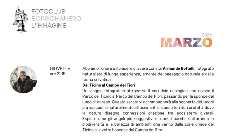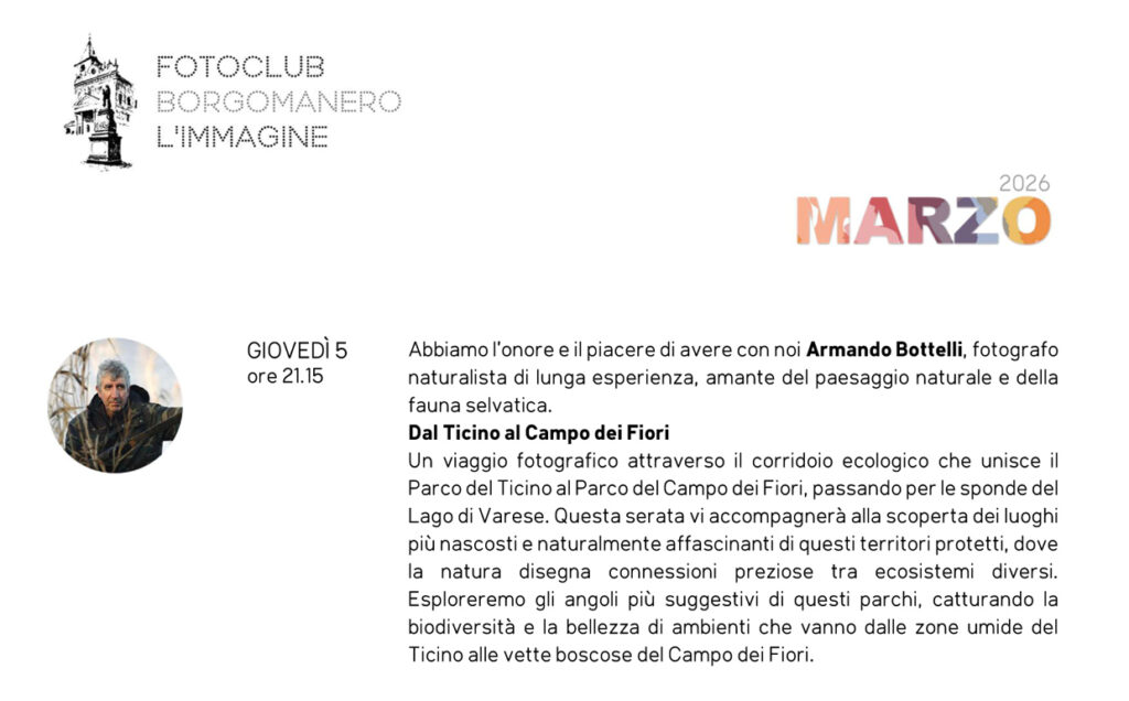 ARMANDO BOTTELLI, fotografo naturalista, sarà ospite presso il Fotoclub Borgomanero L’IMMAGINE, giovedì 5 marzo dalle ore 21,15
