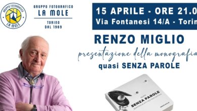 Mercoledì 15 aprile dalle ore 21,00 RENZO MIGLIO presenterà presso il Gruppo Fotografico LA MOLE la sua monografia “quasi SENZA PAROLE”