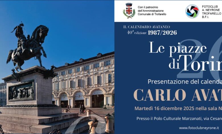 Vi aspettiamo a Trofarello presso il Fotoclub Neyrone per la presentazione del 40° Calendario di Carlo Avataneo su “LE PIAZZE DI TORINO”
