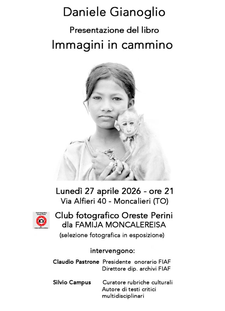 📍 DANIELE GIANOGLIO presenterà il suo libro “IMMAGINI IN CAMMINO” presso il Club Fotografico Oreste Perini dla Famija Moncalereisa – Interverranno Silvio Campus e Claudio Pastrone
