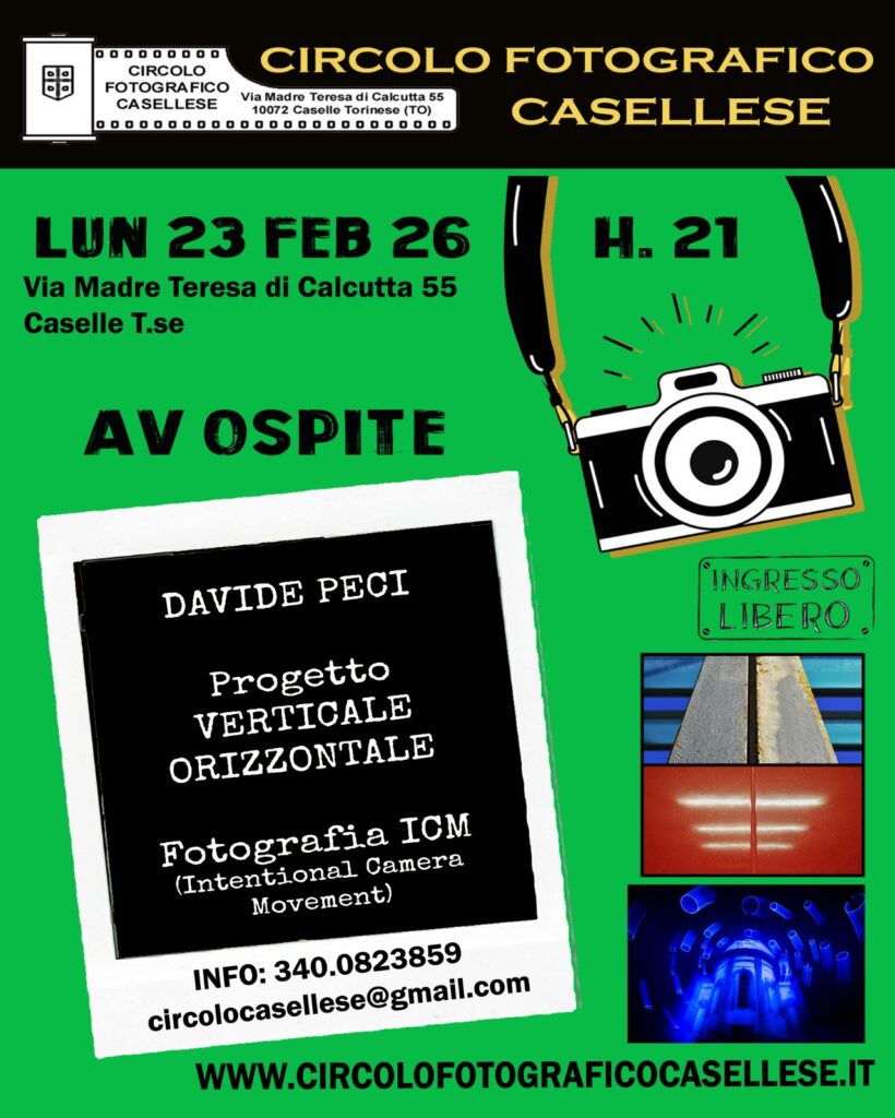 Il Circolo Fotografico Casellese ospiterà DAVIDE PECI e il suo progetto fotografico “Verticale Orizzontale” dalle ore 21,00 di lunedì 23 febbraio a Caselle (TO)