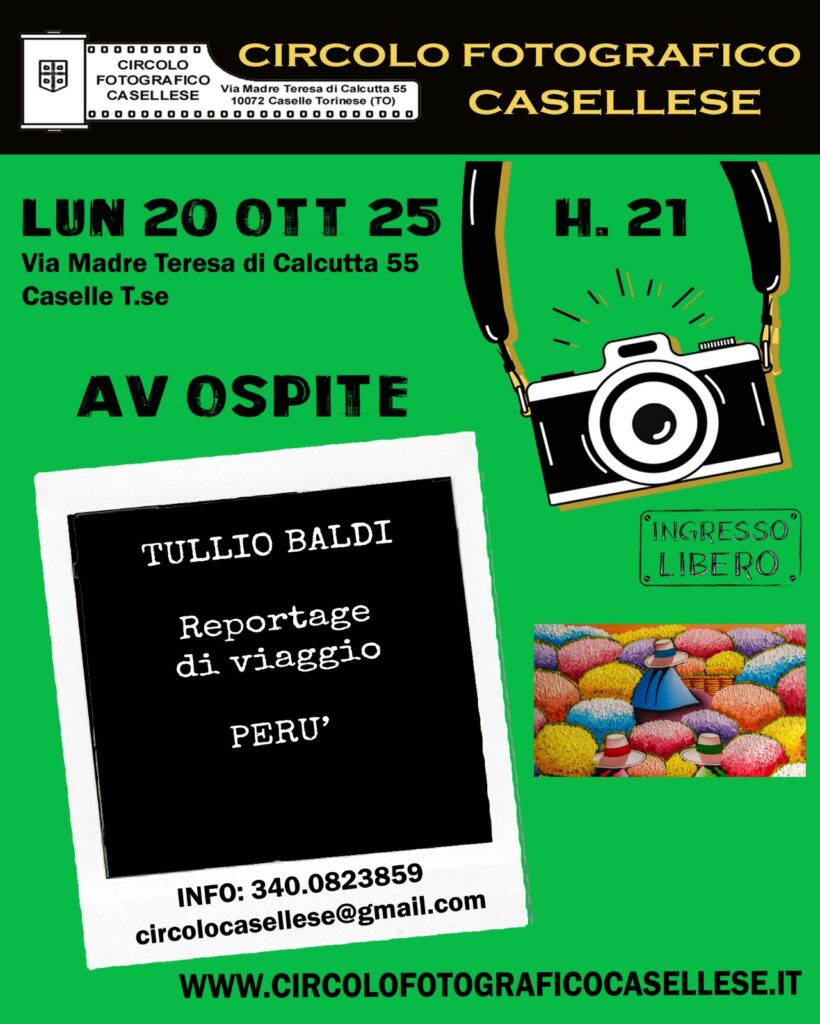 TULLIO BALDI con il suo reportage sul PERU’ sarà ospite presso il Circolo Fotografico Casellese lunedì 21 dalle ore 21,00