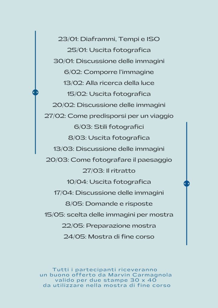 Home/Attività Circoli/Il Circolo fotografico LA FONTE vi aspetta al corso di fotografia che si terrà a Carmagnola dal 23 gennaio Attività Circoli Il Circolo fotografico LA FONTE vi aspetta al corso di fotografia che si terrà a Carmagnola dal 23 gennaio 6 Dicembre 2025 48 Meno di un minuto 6 Dicembre 2025 48 Meno di un minuto Condividi Facebook X LinkedIn Pinterest Skype Messenger Messenger WhatsApp Telegram Condividi via Email Stampa