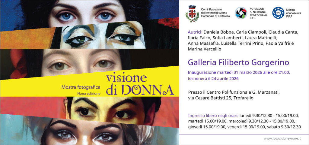Inaugurazione mostra “VISIONI DI DONNA” Martedì 31 marzo dalle ore 21,00 presso il Fotoclub Neyrone di Trofarello