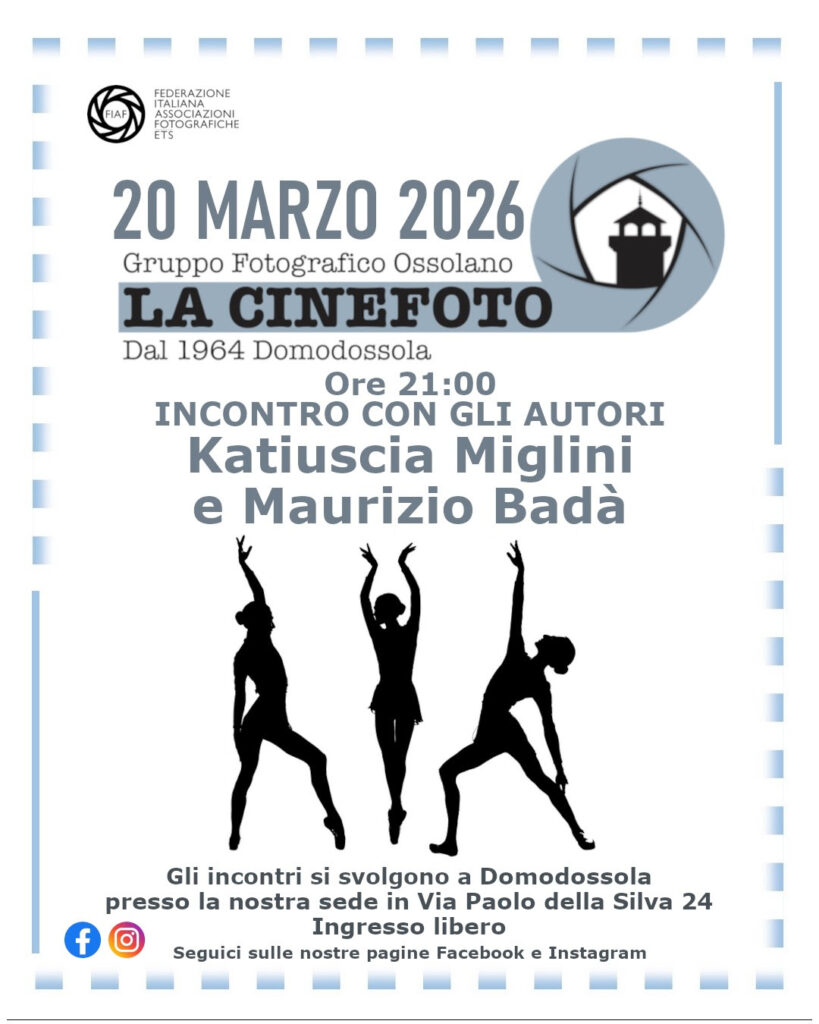 Katiuscia Miglini e Maurizio Badà saranno ospiti presso il Gruppo LA CINEFOTO di Domodossola – VENERDI’ 20 MARZO dalle ore 21,00