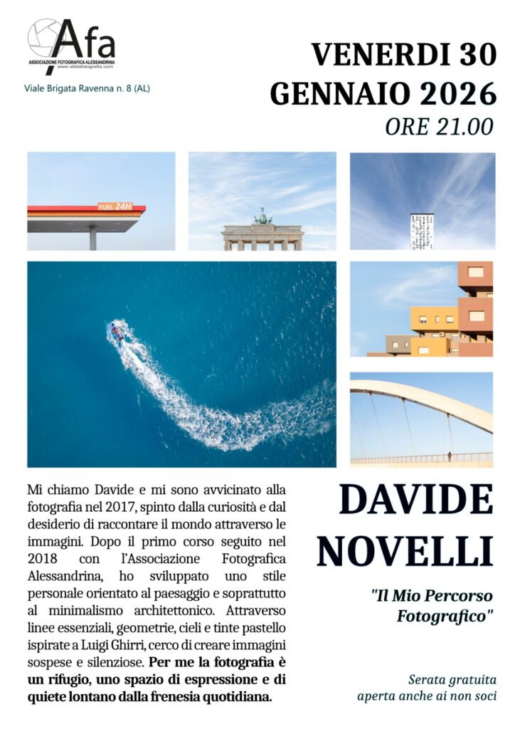DAVIDE NOVELLI vi aspetta venerdì 30 gennaio presso l’Associazione Fotografica Alessandrina