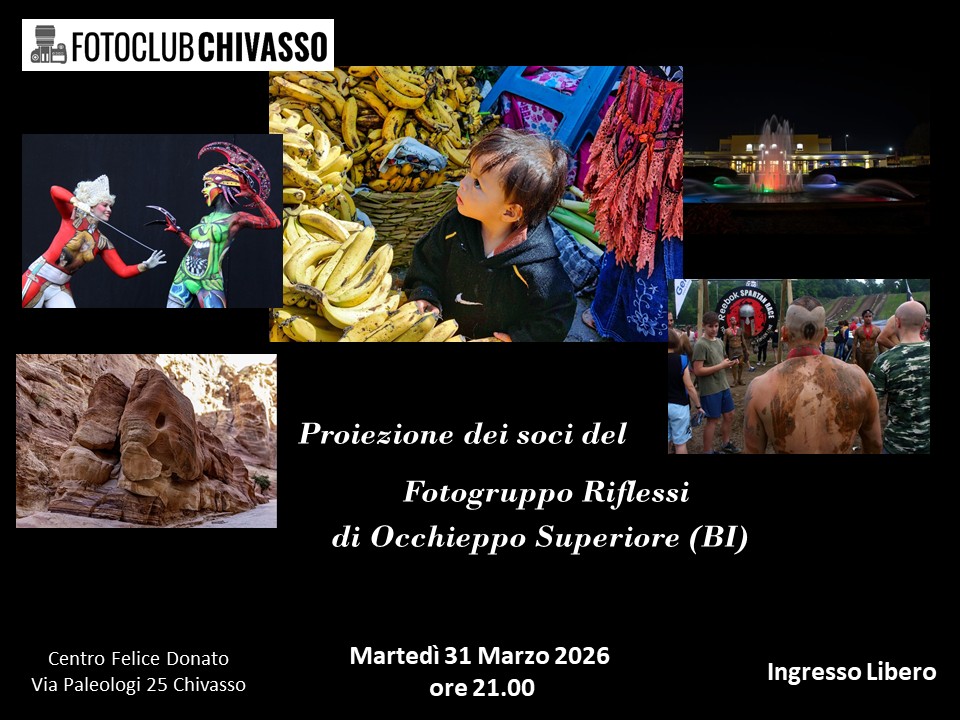 Martedì 31 dalle ore 21,00 il Fotoclub Chivasso ospiterà il Fotogruppo Riflessi di Occhieppo Superiore