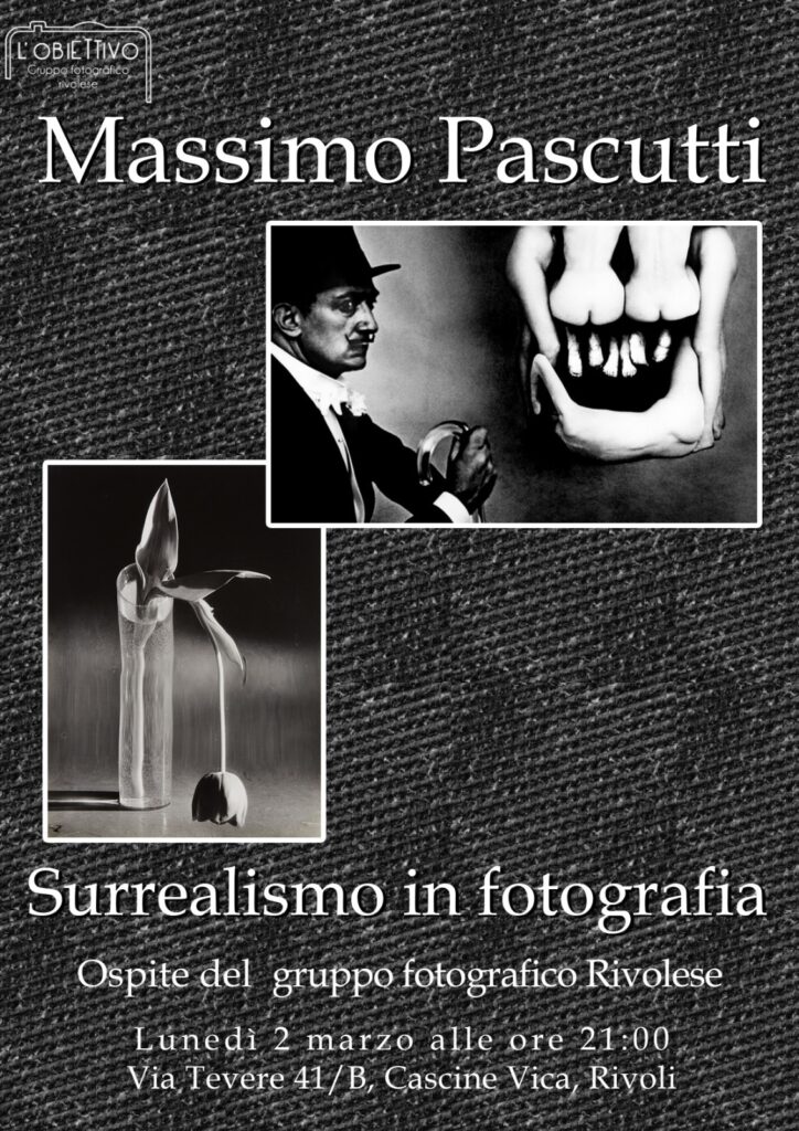 MASSIMO PASCUTTI parlerà di “Surrealismo in fotografia” presso il Circolo L’OBIETTIVO di Rivoli LUNEDI’ 2 MARZO dalle ore 21,00
