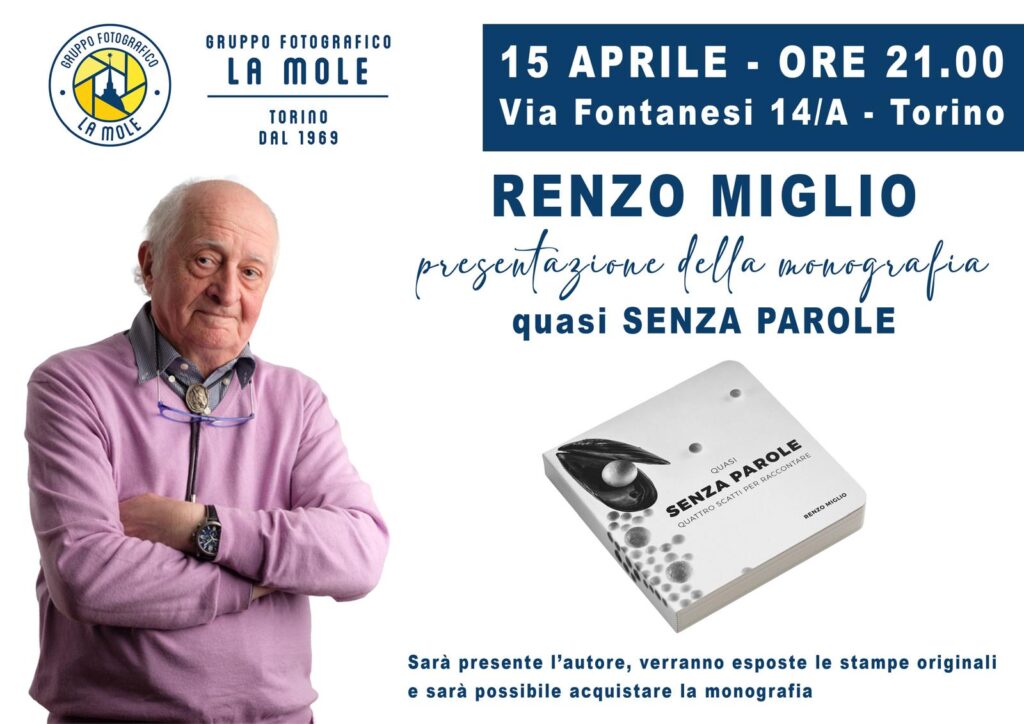 RENZO MIGLIO presenterà la sua monografia “quasi SENZA PAROLE” presso il Gruppo Fotografico LA MOLE MERCOLEDI’ 15 APRILE DALLE ORE 21,00