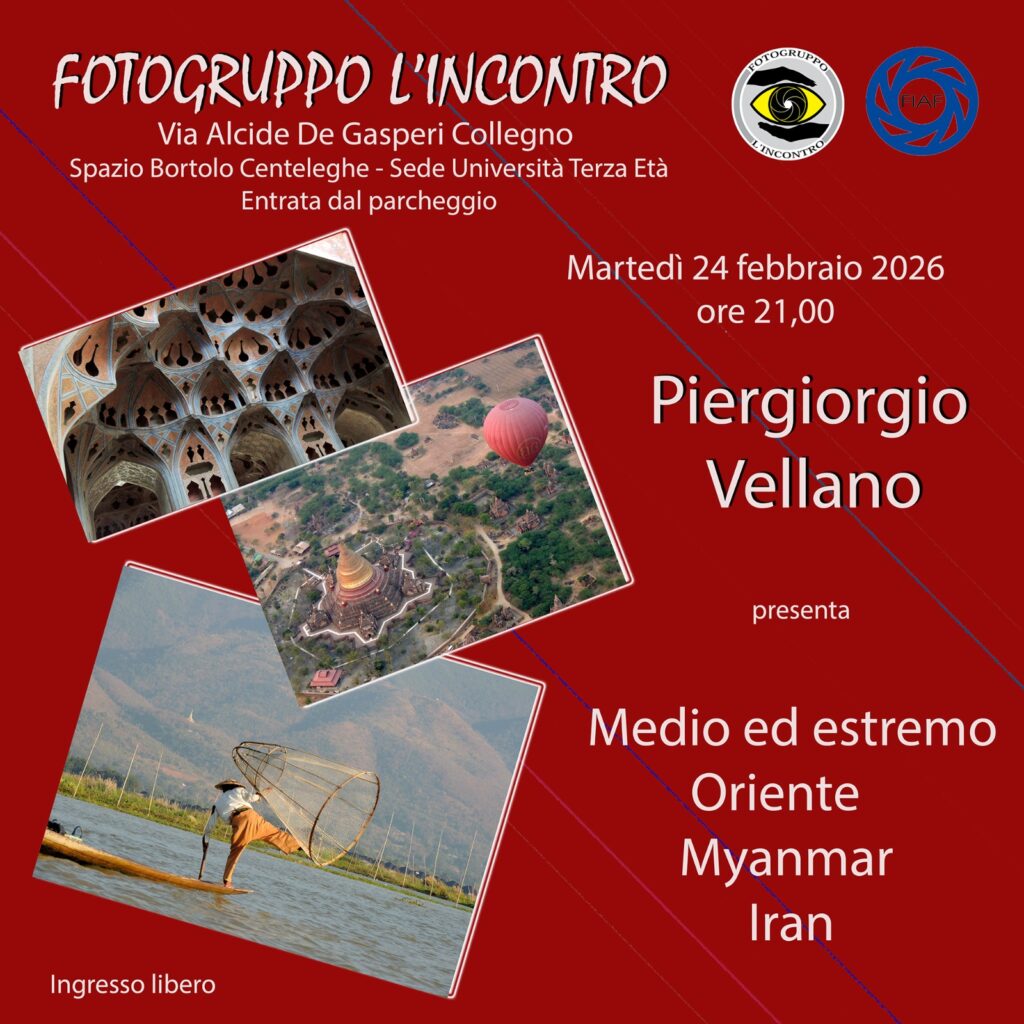 Piergiorgio Vellano ci porterà in “Medio ed Estremo Oriente, in Myanmar e in Iran” martedì 24 dalle ore 21,00 stando comodamente seduti presso il Fotogruppo L’incontro di Collegno
