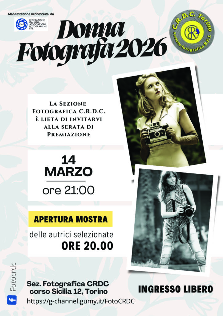 SABATO 14 MARZO DALLE ORE 21,00 – Premiazione del concorso “DONNA FOTOGRAFA 2026” presso il Salone del C.R.D.C.