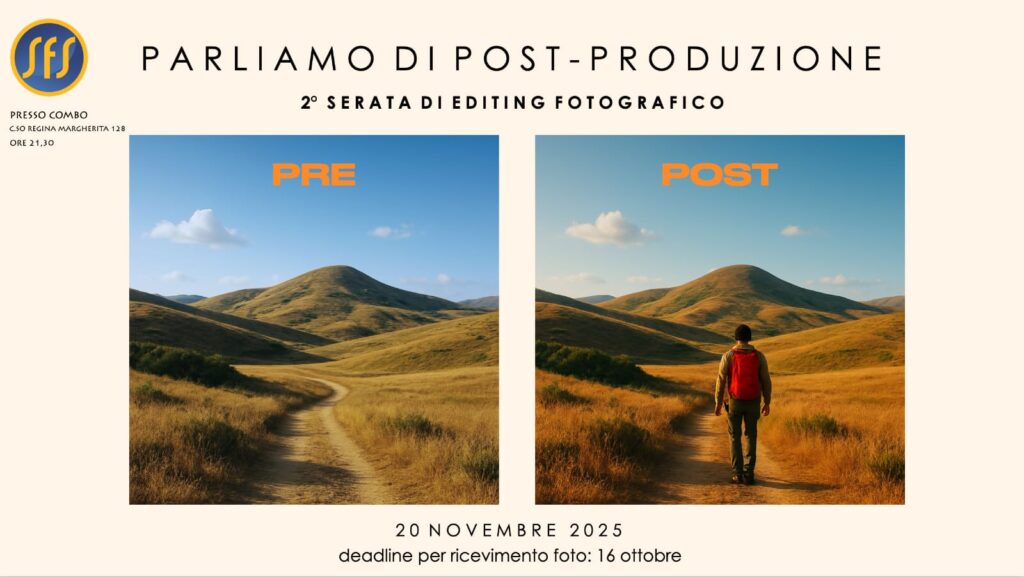 Serata di post-produzione alla Società Fotografica Subalpina giovedì 20 novembre dalle ore 21,30