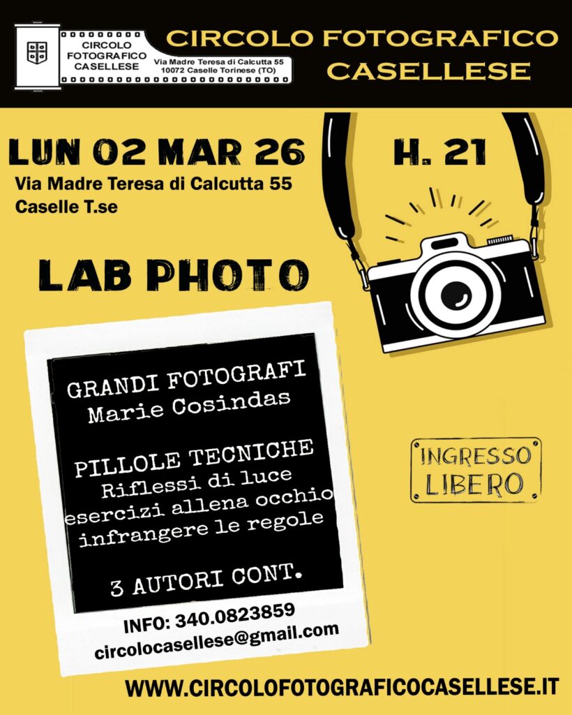 Serata tecnica su argomenti vari presso il Circolo Fotografico Casellese – Lunedì 2 dalle ore 21,00