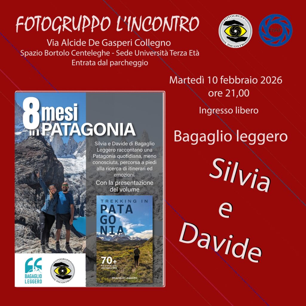 8 MESI IN PATAGONIA per raccontare un territorio meno conosciuto, attraversato a piedi alla ricerca di emozioni e itinerari nuovi. Non mancate all’appuntamento di MARTEDI’ 10 presso il Fotogruppo L’INCONTRO di Collegno dalle ore 21,00