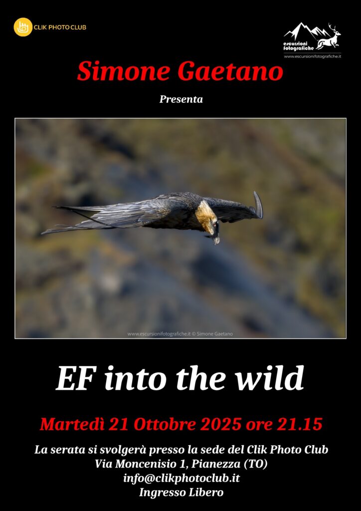 Il CLIK PHOTO CLUB di Pianezza ospiterà martedì 21 dalle ore 21,15 Simone Gaetano di Escursioni Fotografiche con le sue immagini “INTO THE WILD”