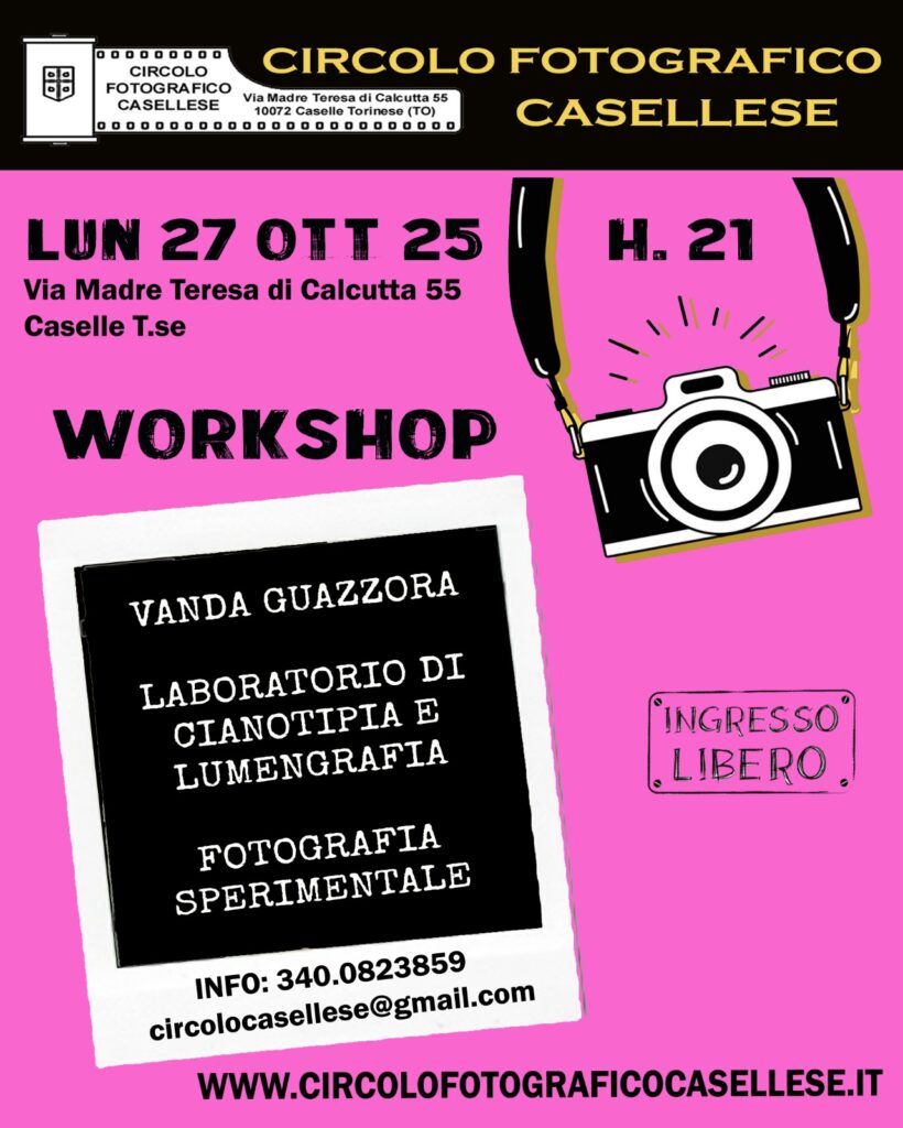 Il Circolo Fotografico Casellese ospiterà Vanda Guazzora in una serata pratica sulla cianotipia e la lumengrafia.