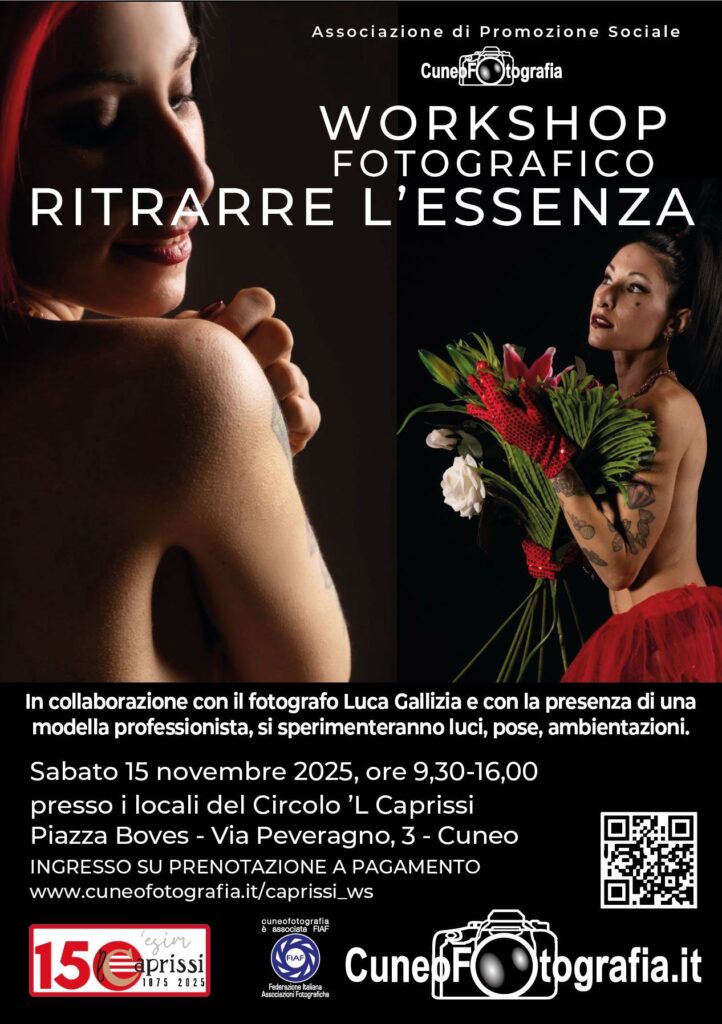 Workshop fotografico a cura di CUNEO FOTOGRAFIA il 15 novembre dalle ore 9,30 presso il circolo ‘L CAPRISSI di Cuneo