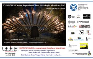 Tempo di Scatto – il circolo fotografico della Città di San Cesario (Le)- nella FIAF: il suo ingresso nel 2025 nel circuito della federazione rappresenta una grande opportunità, tanto per la crescita della FIAF a livello nazionale, quanto a livello regionale, visto che l’associazione si presenta come il primo presidio FIAF in Salento dopo diversi anni di assenza.