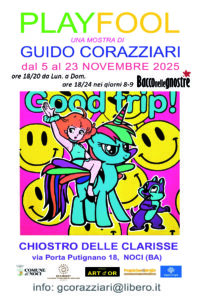 3. PLAY FOOL Amore & Altro 32 dipinti acrilici di Guido CORAZZIARI Chiostro delle Clarisse, via Porta Putignano, 18. Curatrice Antonella Liuzzi.