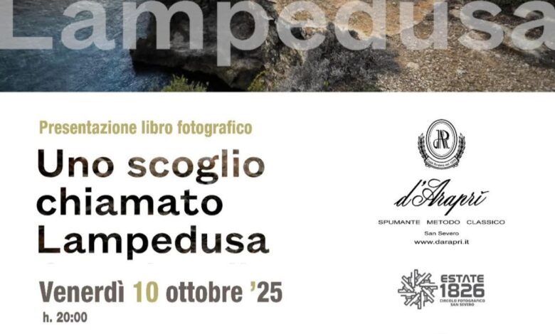 Il prossimo 10 Ottobre 2025 il circolo fotografico di San Severo “Estate 1826” presenterà il libro fotografico “Uno scoglio chiamato Lampedusa”.