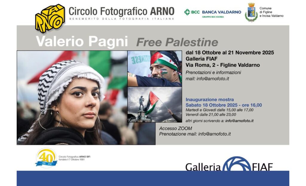 La Galleria FIAF del Circolo Arno di Figline Valdarno ospita la nuova mostra di Valero Pagni, dedicata alle manifestazioni pro Palestina che hanno attraversato piazze e cittĂ negli ultimi mesi.