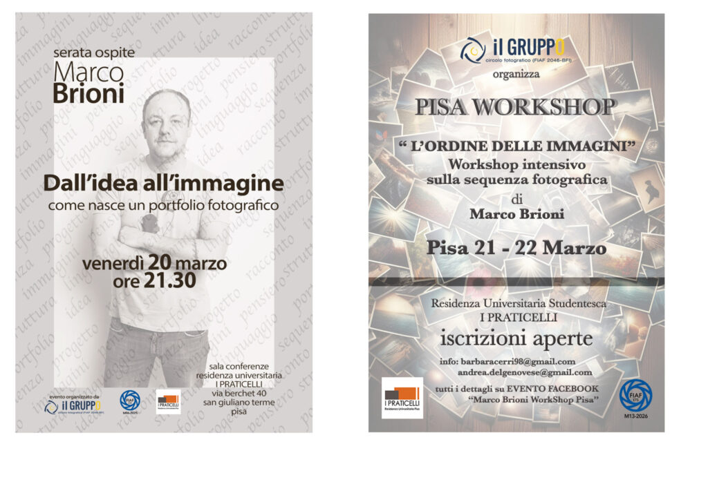 Il Circolo Fotografico Il Gruppo organizza il workshop, con Riconoscimento FIAF M13-2026, di Marco Brioni dal titolo “L’Ordine delle Immagini”, in programma sabato 21 e domenica 22 marzo.