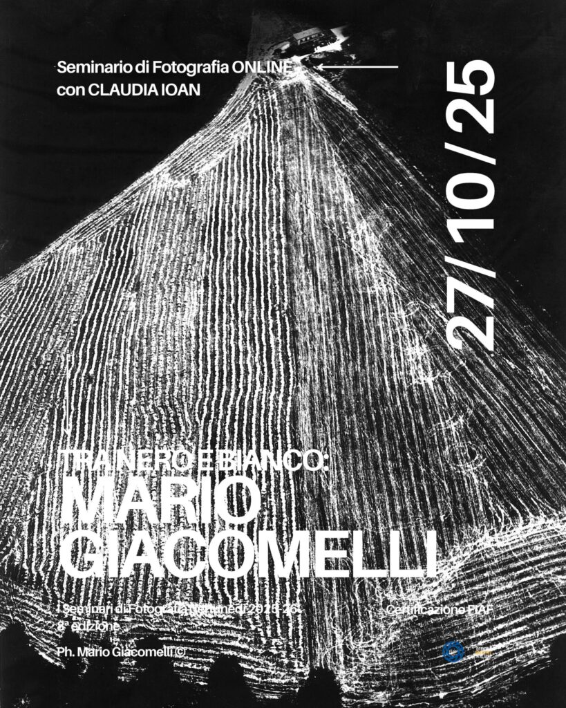 TRA NERO E BIANCO: MARIO GIACOMELLI fa parte della nuovissima Stagione di Seminari di Fotografia online 2025-26 di Officine Creative Italiane, Associazione culturale fotografica. I Seminari di Fotografia sono una manifestazione annuale di formazione culturale permanente gratuita con cadenza settimanale, a cura di Claudia Ioan. Certificazione FIAF.