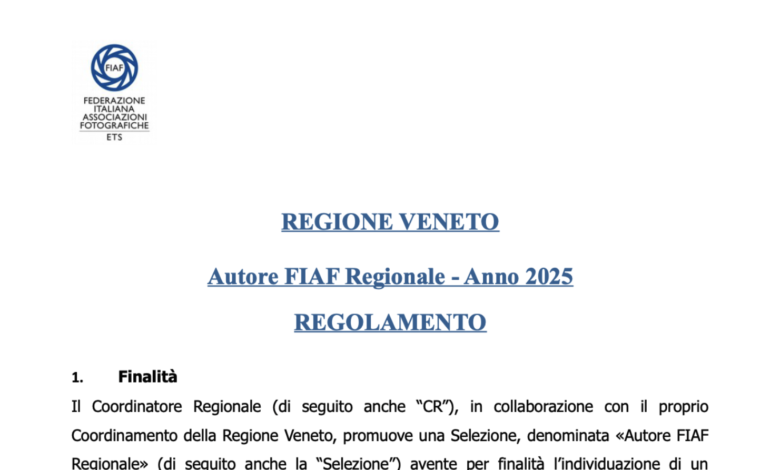 Si può partecipare se residenti in Veneto, tesserati FIAF 2025 e 2024, come indicato nel Regolamento.