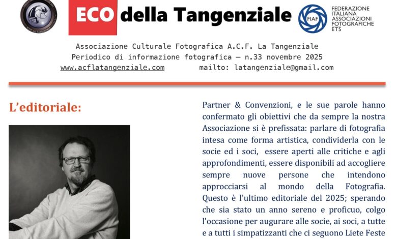 L’Associazione Culturale Fotografica ACF La Tangenziale ha il piacere di inviarvi il trentatreesimo numero di “ECO”.